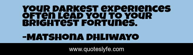 "Matshona Dhliwayo Quotes." Quoteslyfe.com, 2025. Mon. 08 Dec. 2025. <https://www.quoteslyfe.com/quote/Your-darkest-experiences-often-lead-you-to-83751>.