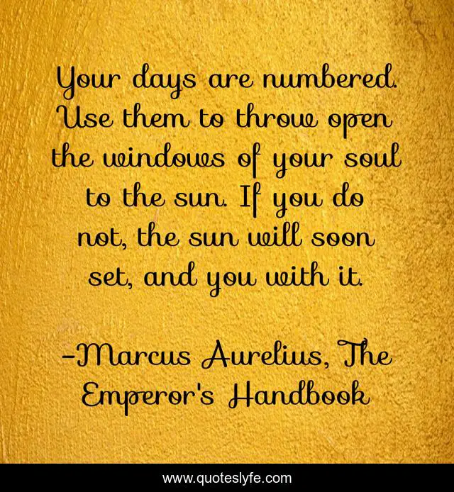 "Marcus Aurelius, The Emperor's Handbook Quotes." Quoteslyfe.com, 2025. Fri. 05 Dec. 2025. <https://www.quoteslyfe.com/quote/Your-days-are-numbered-Use-them-to-3661>.