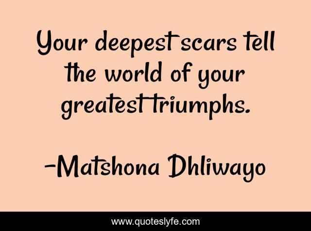 "Matshona Dhliwayo Quotes." Quoteslyfe.com, 2025. Fri. 05 Dec. 2025. <https://www.quoteslyfe.com/quote/Your-deepest-scars-tell-the-world-of-58345>.