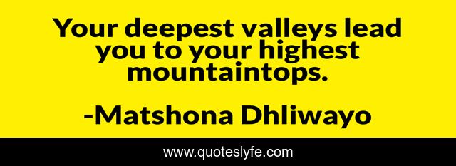 "Matshona Dhliwayo Quotes." Quoteslyfe.com, 2025. Tue. 09 Dec. 2025. <https://www.quoteslyfe.com/quote/Your-deepest-valleys-lead-you-to-your-109085>.