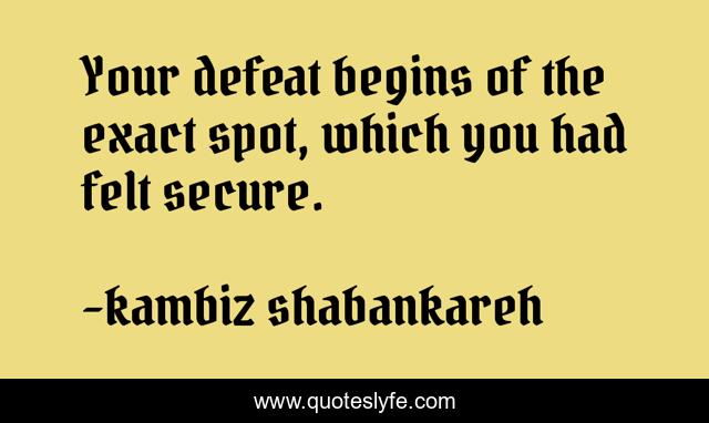 This page presents the quote "Your defeat begins of the exact spot, which you had felt secure.". Author of this quote is kambiz shabankareh. This quote is about security, spot, secure, defeat,.