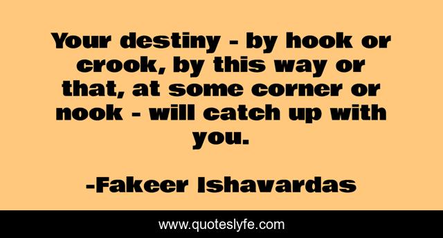 Your destiny - by hook or crook, by this way or that, at some corner or nook - will catch up with you.