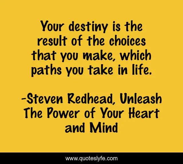 "Steven Redhead, Unleash The Power of Your Heart and Mind Quotes." Quoteslyfe.com, 2025. Sat. 06 Dec. 2025. <https://www.quoteslyfe.com/quote/Your-destiny-is-the-result-of-the-107097>.