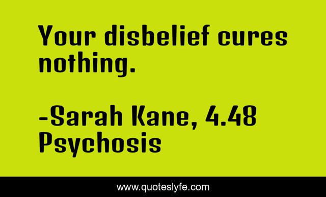 "Sarah Kane, 4.48 Psychosis Quotes." Quoteslyfe.com, 2025. Mon. 08 Dec. 2025. <https://www.quoteslyfe.com/quote/Your-disbelief-cures-nothing-113969>.