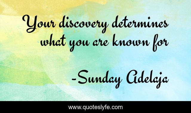 This page presents the quote "Your discovery determines what you are known for". Author of this quote is Sunday Adelaja. This quote is about known, determine, discovery,.