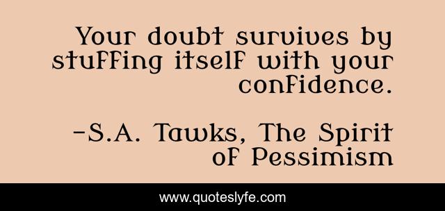 "S.A. Tawks, The Spirit of Pessimism Quotes." Quoteslyfe.com, 2025. Sat. 06 Dec. 2025. <https://www.quoteslyfe.com/quote/Your-doubt-survives-by-stuffing-itself-with-126129>.