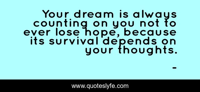 Your dream is always counting on you not to ever lose hope, because its survival depends on your thoughts.
