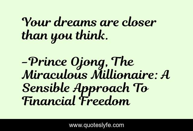 This page presents the quote "Your dreams are closer than you think.". Author of this quote is Prince Ojong, The Miraculous Millionaire: A Sensible Approach To Financial Freedom. This quote is about personal-finance, success-strategies,.