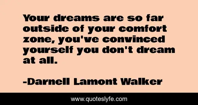 This page presents the quote "Your dreams are so far outside of your comfort zone, you've convinced yourself you don't dream at all.". Author of this quote is Darnell Lamont Walker. This quote is about comfort-zone, comfort, dream, dreams, dreaming,.