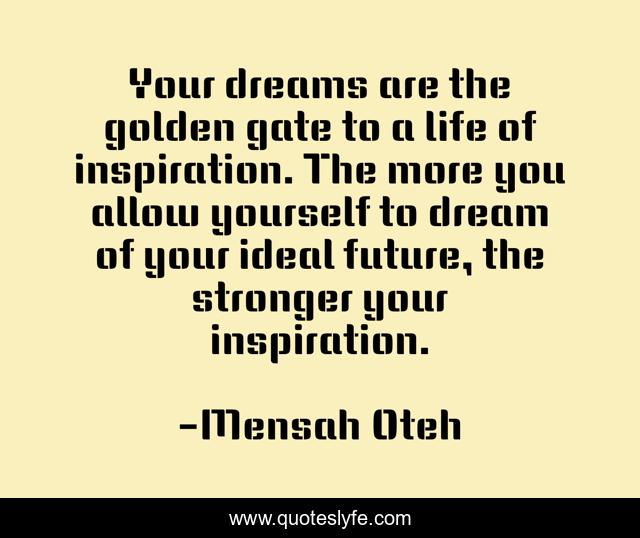 "Mensah Oteh Quotes." Quoteslyfe.com, 2025. Sat. 06 Dec. 2025. <https://www.quoteslyfe.com/quote/Your-dreams-are-the-golden-gate-to-49055>.