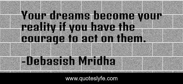 This page presents the quote "Your dreams become your reality if you have the courage to act on them.". Author of this quote is Debasish Mridha. This quote is about courage-to-act-on-dreams, philosophy, debasish-mridha, quotes, courage, inspirational, enthusiasm, debasish-mridha-m-d, dreams,.