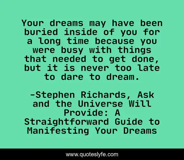 "Stephen Richards, Ask and the Universe Will Provide: A Straightforward Guide to Manifesting Your Dreams Quotes." Quoteslyfe.com, 2025. Mon. 08 Dec. 2025. <https://www.quoteslyfe.com/quote/Your-dreams-may-have-been-buried-inside-44787>.