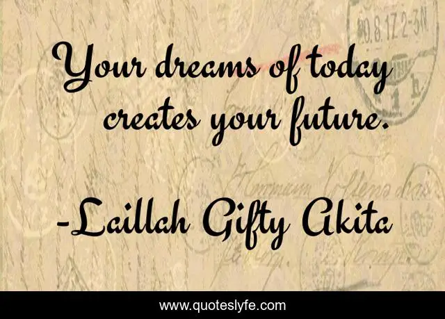 "Laillah Gifty Akita Quotes." Quoteslyfe.com, 2025. Mon. 08 Dec. 2025. <https://www.quoteslyfe.com/quote/Your-dreams-of-today-creates-your-future-54146>.