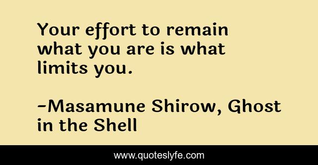 This page presents the quote "Your effort to remain what you are is what limits you.". Author of this quote is Masamune Shirow, Ghost in the Shell. This quote is about self, identity,.