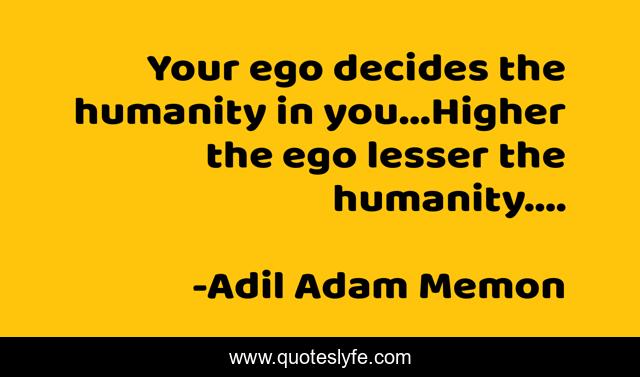 This page presents the quote "Your ego decides the humanity in you...Higher the ego lesser the humanity....". Author of this quote is Adil Adam Memon. .