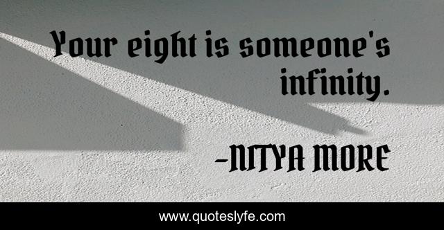 This page presents the quote "Your eight is someone's infinity.". Author of this quote is NITYA MORE. This quote is about blessings, infinity, perspective,.