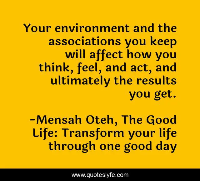 "Mensah Oteh, The Good Life: Transform your life through one good day Quotes." Quoteslyfe.com, 2025. Fri. 05 Dec. 2025. <https://www.quoteslyfe.com/quote/Your-environment-and-the-associations-you-keep-15862>.