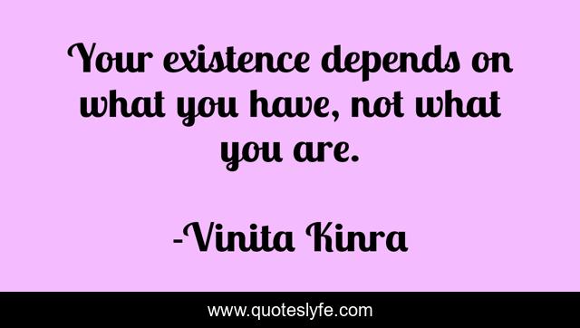 This page presents the quote "Your existence depends on what you have, not what you are.". Author of this quote is Vinita Kinra. This quote is about enthusiasm, inspirational,.