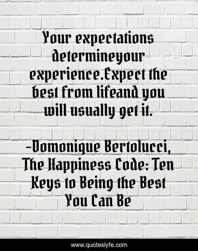 "Domonique Bertolucci, The Happiness Code: Ten Keys to Being the Best You Can Be Quotes." Quoteslyfe.com, 2025. Sat. 06 Dec. 2025. <https://www.quoteslyfe.com/quote/Your-expectations-determineyour-experience-Expect-the-best-215354>.