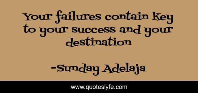 This page presents the quote "Your failures contain key to your success and your destination". Author of this quote is Sunday Adelaja. This quote is about life, success, keys, destination, calling, failure, purpose, truth,.