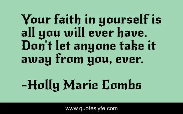 This page presents the quote "Your faith in yourself is all you will ever have. Don't let anyone take it away from you, ever.". Author of this quote is Holly Marie Combs. .