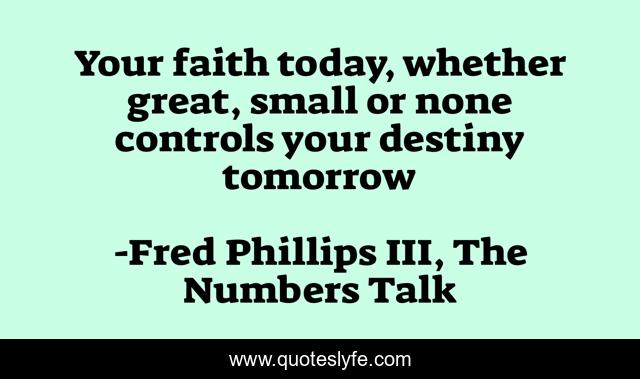 "Fred Phillips III, The Numbers Talk Quotes." Quoteslyfe.com, 2025. Mon. 08 Dec. 2025. <https://www.quoteslyfe.com/quote/Your-faith-today-whether-great-small-or-107625>.