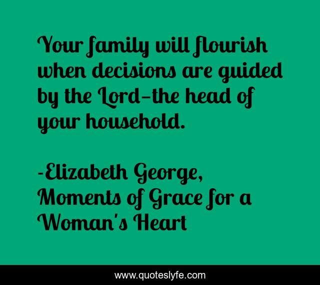 This page presents the quote "Your family will flourish when decisions are guided by the Lord—the head of your household.". Author of this quote is Elizabeth George, Moments of Grace for a Woman's Heart. This quote is about head, love, parent, family, flourish, guided, mom, lord, decisions,.