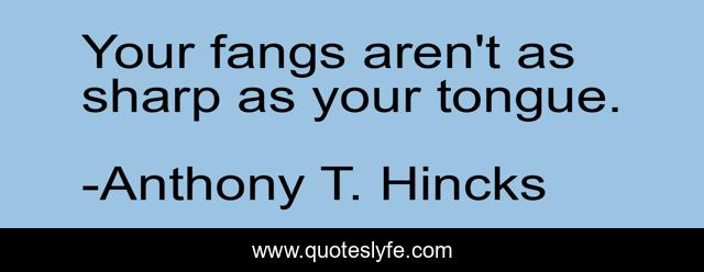 This page presents the quote "Your fangs aren't as sharp as your tongue.". Author of this quote is Anthony T. Hincks. This quote is about life, philosophy, vampire, fangs, sharp, tongue, blunt,.