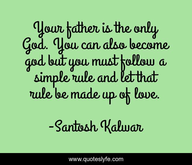 This page presents the quote "Your father is the only God. You can also become god but you must follow a simple rule and let that rule be made up of love.". Author of this quote is Santosh Kalwar. This quote is about heavenly-father, god, father,.