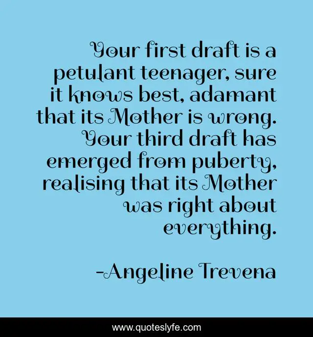 "Angeline Trevena Quotes." Quoteslyfe.com, 2025. Mon. 08 Dec. 2025. <https://www.quoteslyfe.com/quote/Your-first-draft-is-a-petulant-teenager-215061>.