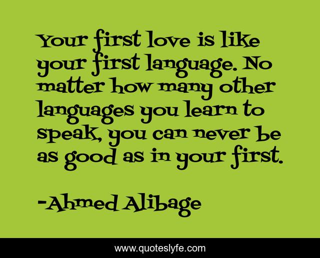 This page presents the quote "Your first love is like your first language. No matter how many other languages you learn to speak, you can never be as good as in your first.". Author of this quote is Ahmed Alibage. This quote is about learn, love, language, affection, speak,.