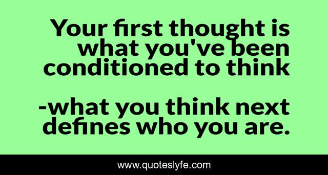 This page presents the quote "Your first thought is what you've been conditioned to think". Author of this quote is what you think next defines who you are.. .