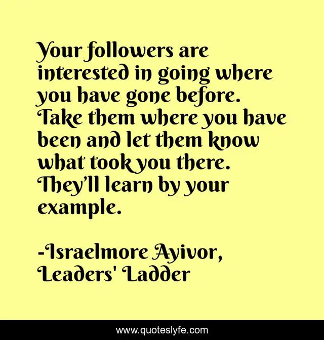 "Israelmore Ayivor, Leaders' Ladder Quotes." Quoteslyfe.com, 2025. Sat. 06 Dec. 2025. <https://www.quoteslyfe.com/quote/Your-followers-are-interested-in-going-where-64860>.