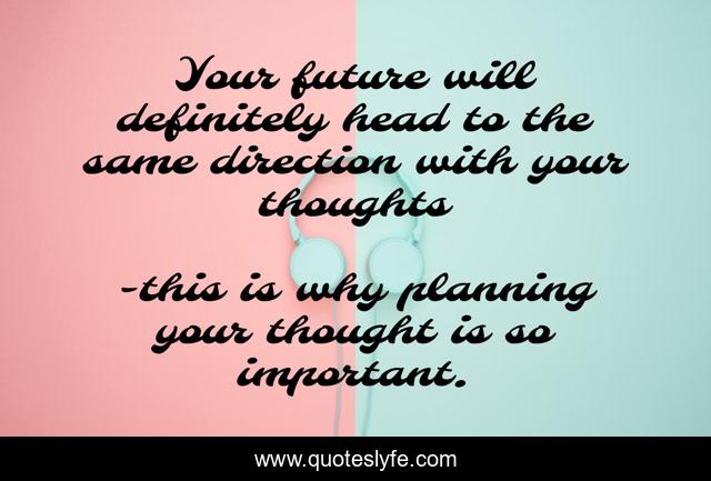 This page presents the quote "Your future will definitely head to the same direction with your thoughts". Author of this quote is this is why planning your thought is so important.. .