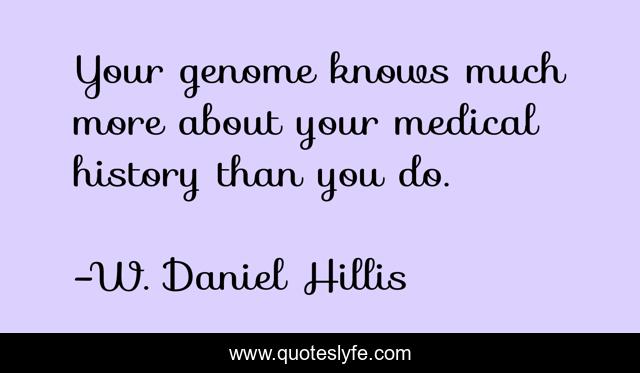 This page presents the quote "Your genome knows much more about your medical history than you do.". Author of this quote is W. Daniel Hillis. This quote is about medical, genome,.