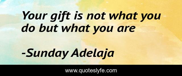 This page presents the quote "Your gift is not what you do but what you are". Author of this quote is Sunday Adelaja. This quote is about life, gift, people, work, calling, purpose, truth,.
