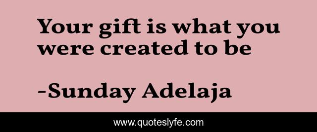 This page presents the quote "Your gift is what you were created to be". Author of this quote is Sunday Adelaja. This quote is about poor, life, talent, gift, creation, calling, purpose, truth,.