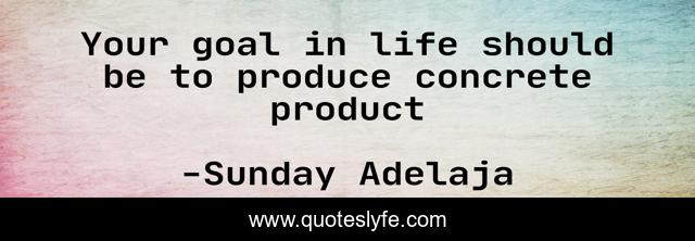 This page presents the quote "Your goal in life should be to produce concrete product". Author of this quote is Sunday Adelaja. This quote is about life, productive, productivity, finance, life-goals, essence-of-life, money, blessing, product,.