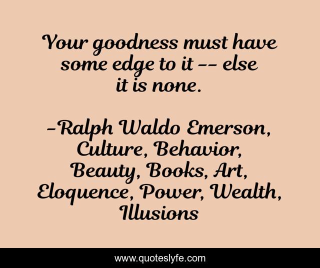 "Ralph Waldo Emerson, Culture, Behavior, Beauty, Books, Art, Eloquence, Power, Wealth, Illusions Quotes." Quoteslyfe.com, 2025. Fri. 05 Dec. 2025. <https://www.quoteslyfe.com/quote/Your-goodness-must-have-some-edge-to-43320>.