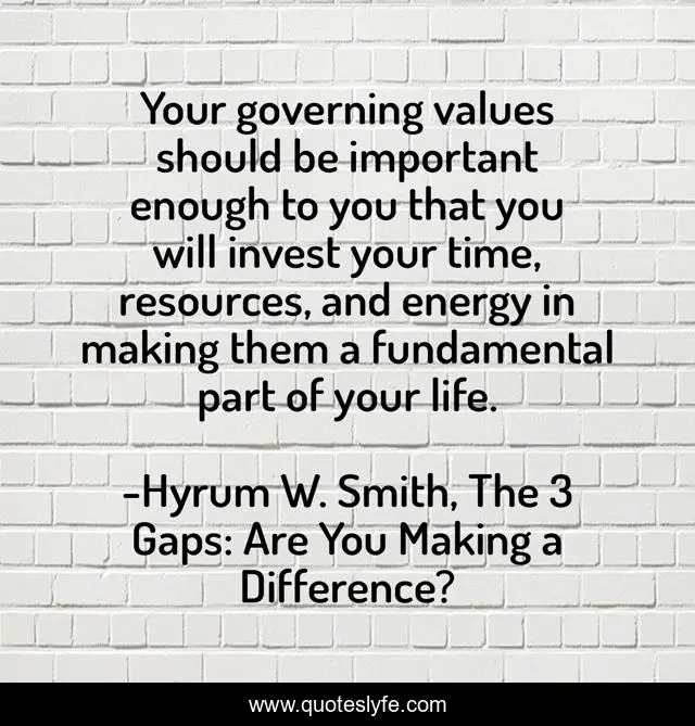 "Hyrum W. Smith, The 3 Gaps: Are You Making a Difference? Quotes." Quoteslyfe.com, 2025. Fri. 05 Dec. 2025. <https://www.quoteslyfe.com/quote/Your-governing-values-should-be-important-enough-125241>.