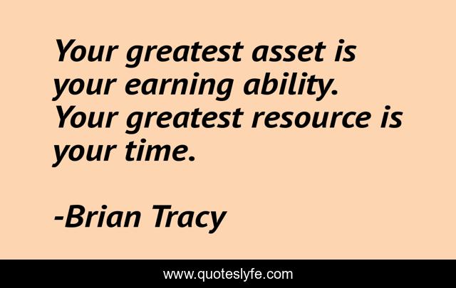 This page presents the quote "Your greatest asset is your earning ability. Your greatest resource is your time.". Author of this quote is Brian Tracy. This quote is about resource, greatest, ability,.