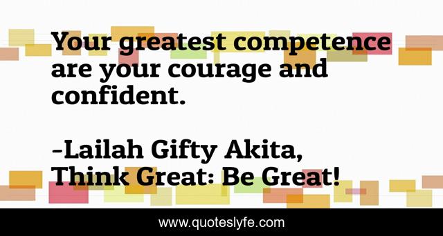 "Lailah Gifty Akita, Think Great: Be Great! Quotes." Quoteslyfe.com, 2025. Mon. 08 Dec. 2025. <https://www.quoteslyfe.com/quote/Your-greatest-competence-are-your-courage-and-199424>.