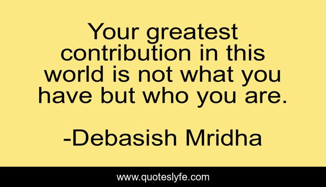 "Debasish Mridha Quotes." Quoteslyfe.com, 2025. Sat. 06 Dec. 2025. <https://www.quoteslyfe.com/quote/Your-greatest-contribution-in-this-world-is-23573>.