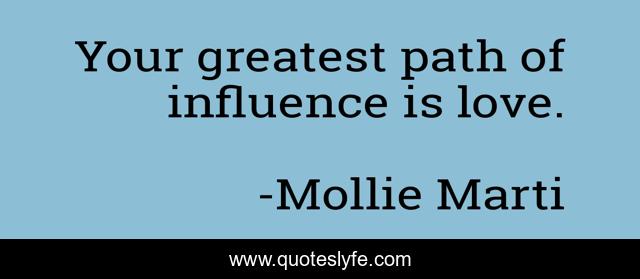 This page presents the quote "Your greatest path of influence is love.". Author of this quote is Mollie Marti. This quote is about love, presence, truth, authenticity, kindness, affection,.