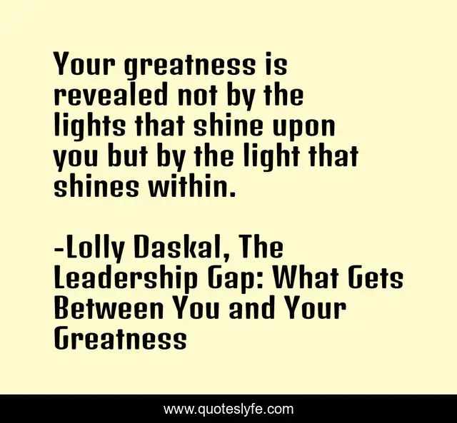 "Lolly Daskal, The Leadership Gap: What Gets Between You and Your Greatness Quotes." Quoteslyfe.com, 2025. Sat. 06 Dec. 2025. <https://www.quoteslyfe.com/quote/Your-greatness-is-revealed-not-by-the-22524>.