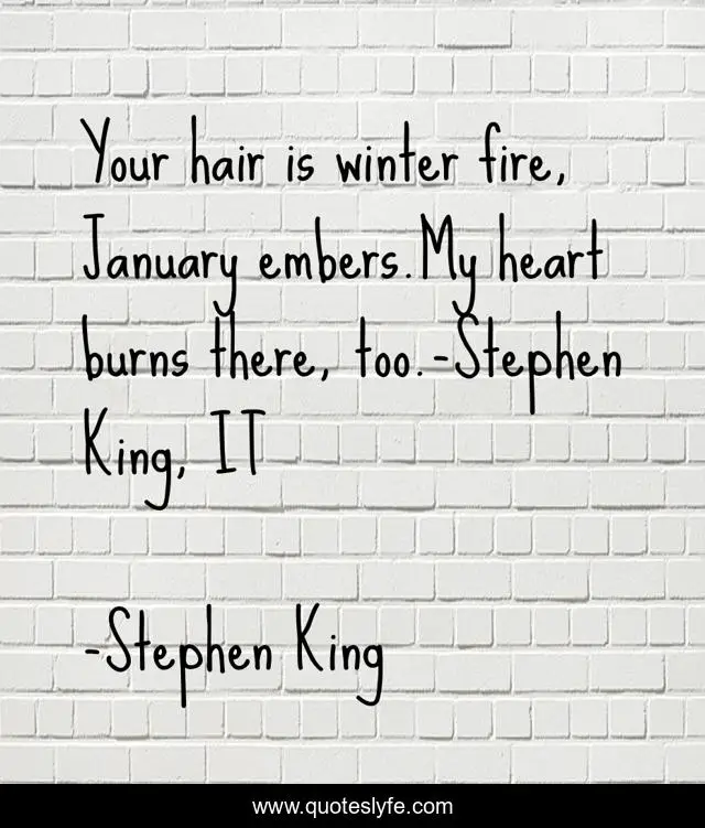 "Stephen King Quotes." Quoteslyfe.com, 2025. Mon. 08 Dec. 2025. <https://www.quoteslyfe.com/quote/Your-hair-is-winter-fire-January-embers-48308>.