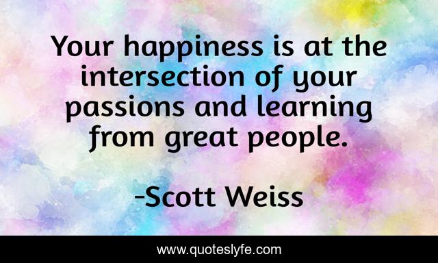 This page presents the quote "Your happiness is at the intersection of your passions and learning from great people.". Author of this quote is Scott Weiss. This quote is about great, learning, people,.