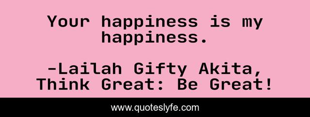"Lailah Gifty Akita, Think Great: Be Great! Quotes." Quoteslyfe.com, 2025. Mon. 08 Dec. 2025. <https://www.quoteslyfe.com/quote/Your-happiness-is-my-happiness-73834>.