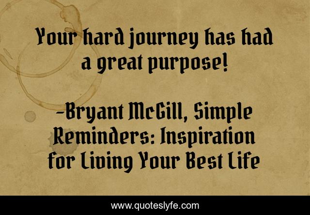 "Bryant McGill, Simple Reminders: Inspiration for Living Your Best Life Quotes." Quoteslyfe.com, 2025. Fri. 05 Dec. 2025. <https://www.quoteslyfe.com/quote/Your-hard-journey-has-had-a-great-140009>.