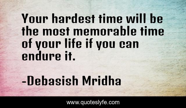 This page presents the quote "Your hardest time will be the most memorable time of your life if you can endure it.". Author of this quote is Debasish Mridha. This quote is about life, love, knowledge, inspirational, intelligence, philosophy, wisdom, quotes, affection,.